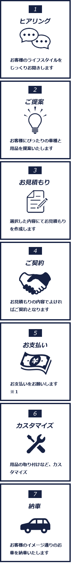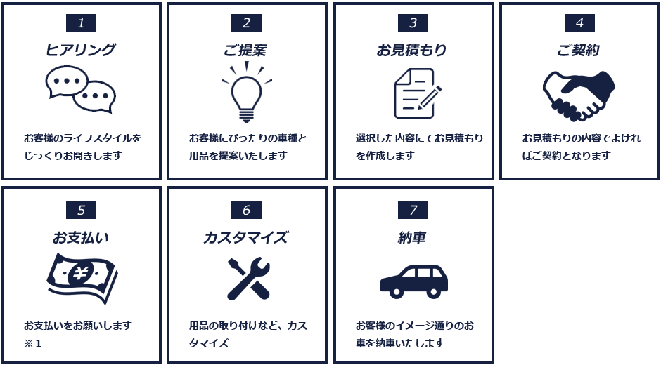 - 各種ローンも取り扱いしており、お客様のより良い支払い方法を提案させていただきます。